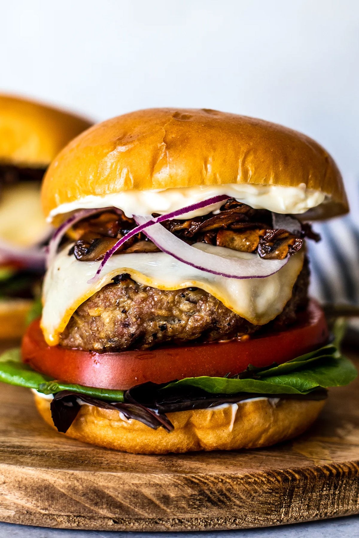 This recipe, as written, always yields juicy burgers. But if moisture is a concern for you (you tend to overcook burgers, you’re using 99% fat-free turkey, etc.), the following tricks will help: