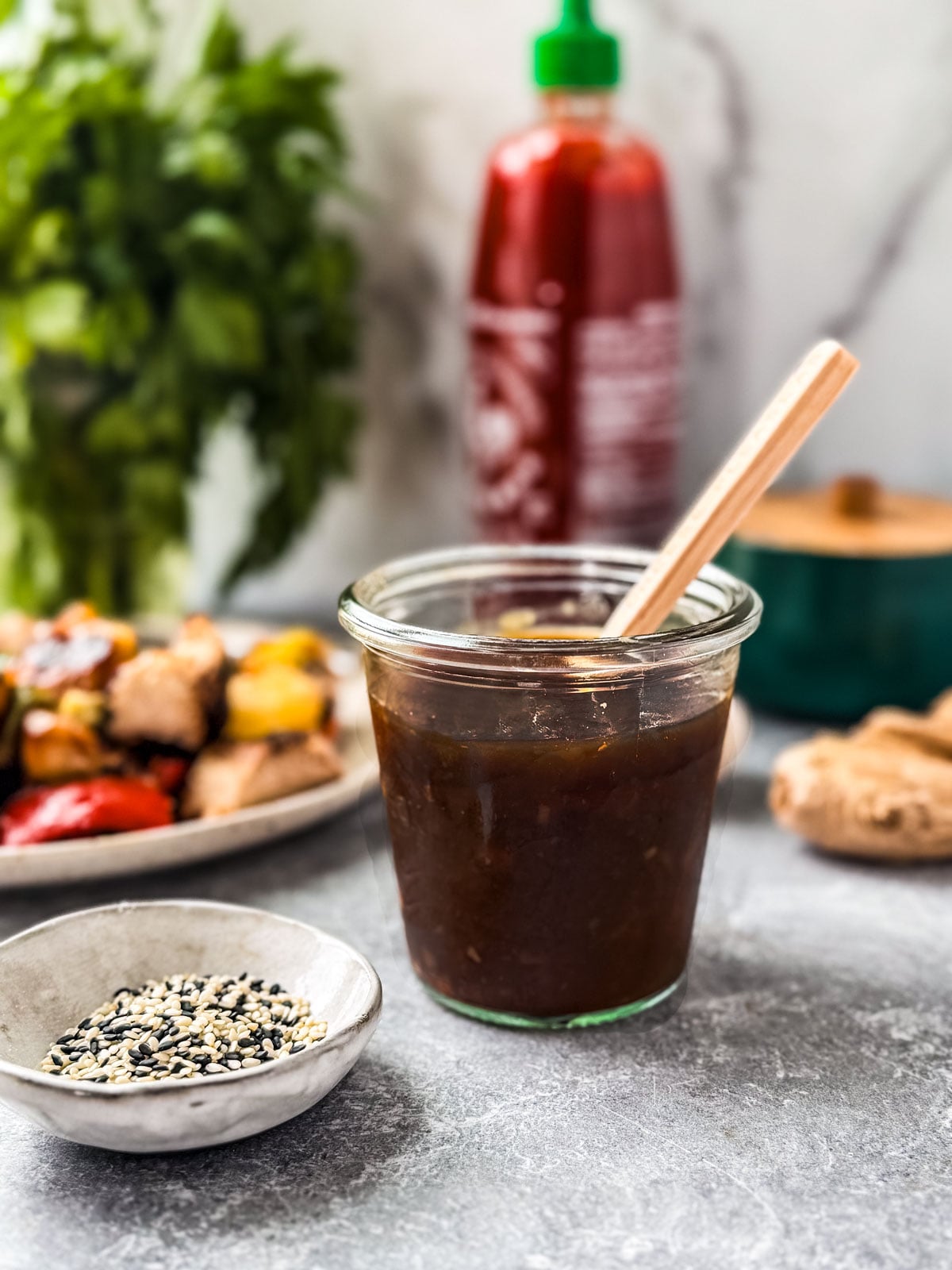 As mentioned above, we love using this sauce as a glaze or marinade for these teriyaki sheet pan salmon with veggies and these grilled pineapple chicken kabobs. You could also slather it over seared baby bok choy or honey miso roasted sweet potatoes for some extra oomph.