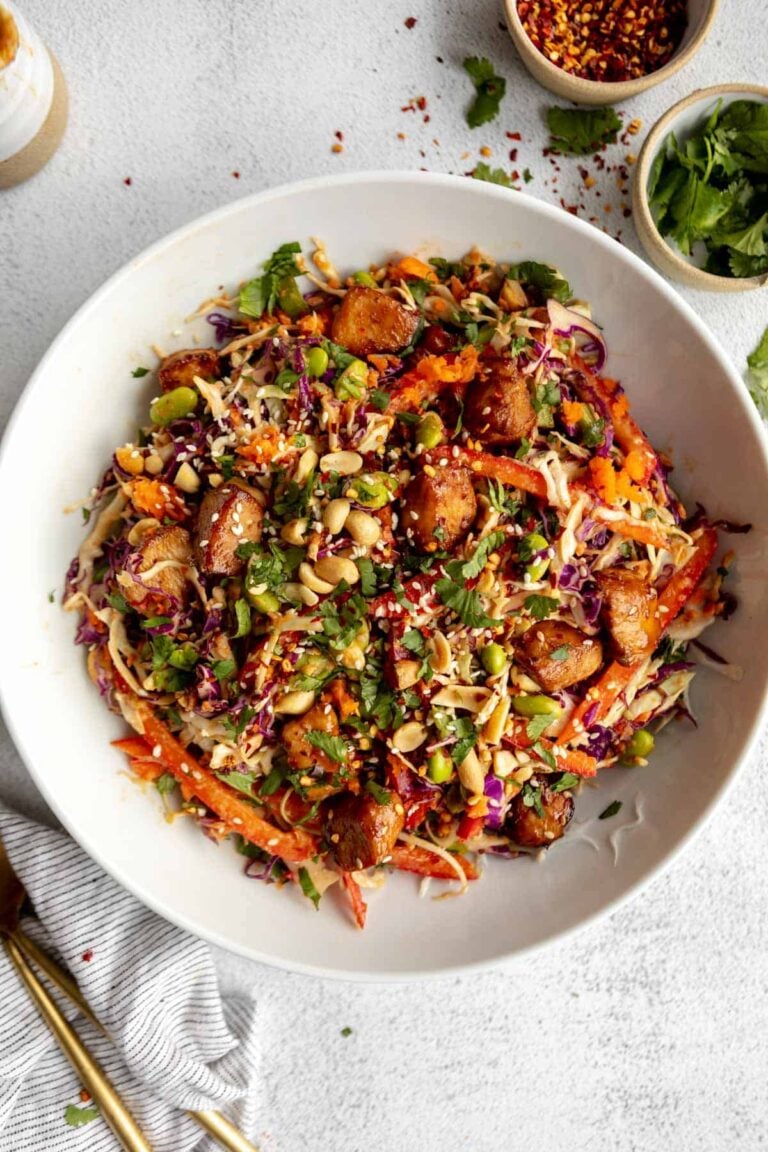 This healthy rice bowl with salmon is a super satisfying lunch, clocking in at 41 grams of protein. Fresh, flavorful, and full of omega-3s and all the good-for-you things, it’s basically the easiest (and most delicious) way to get more fish into your week.