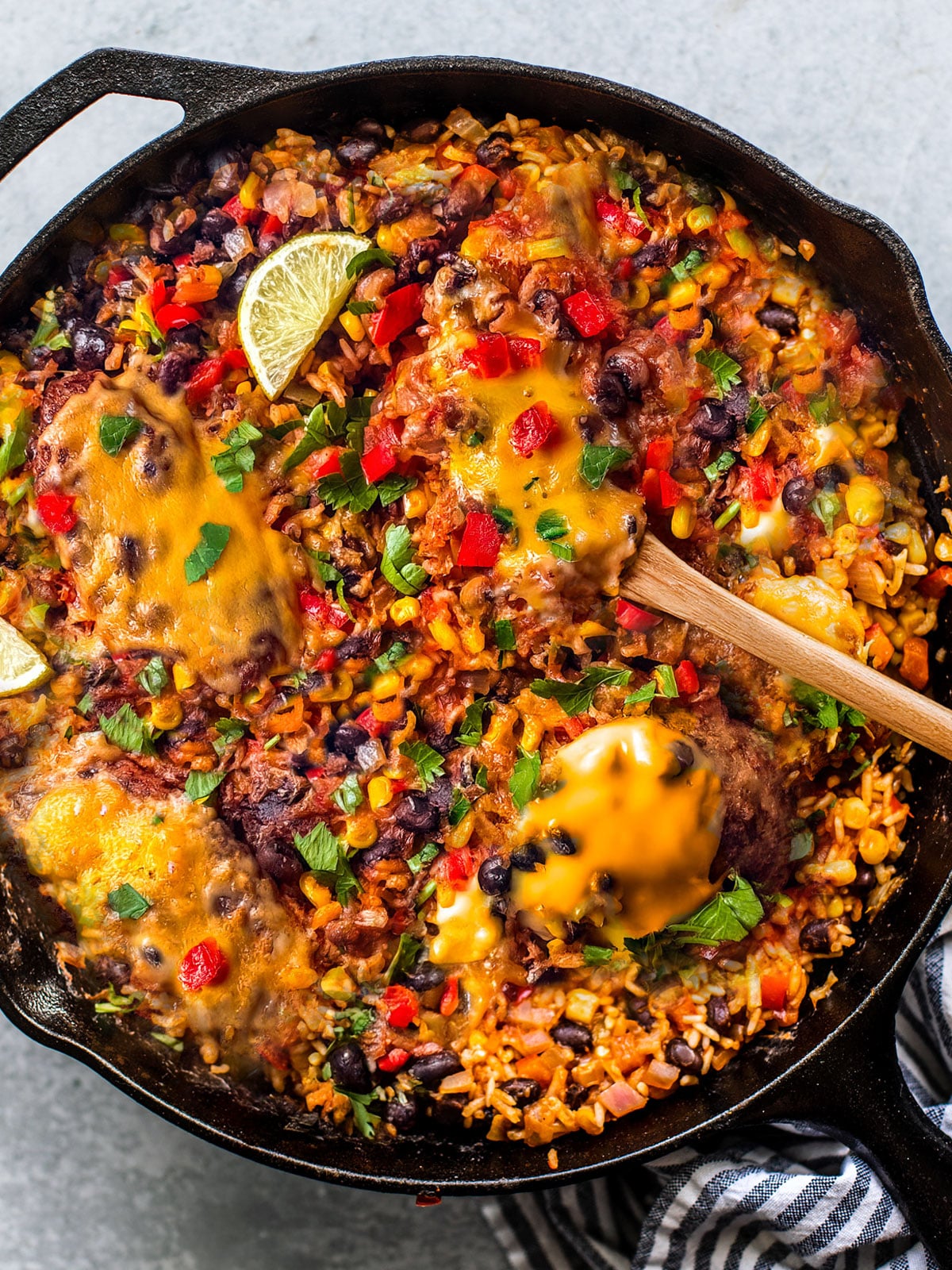 If easy skillet dinners are your thing, this one-pan Tex-Mex chicken bake is about to earn a spot in your weekly lineup. It’s got everything: juicy chicken, fluffy rice, veggies, melty cheese—and all the bold, zesty flavors of taco night, baked into one gloriously low-effort meal.