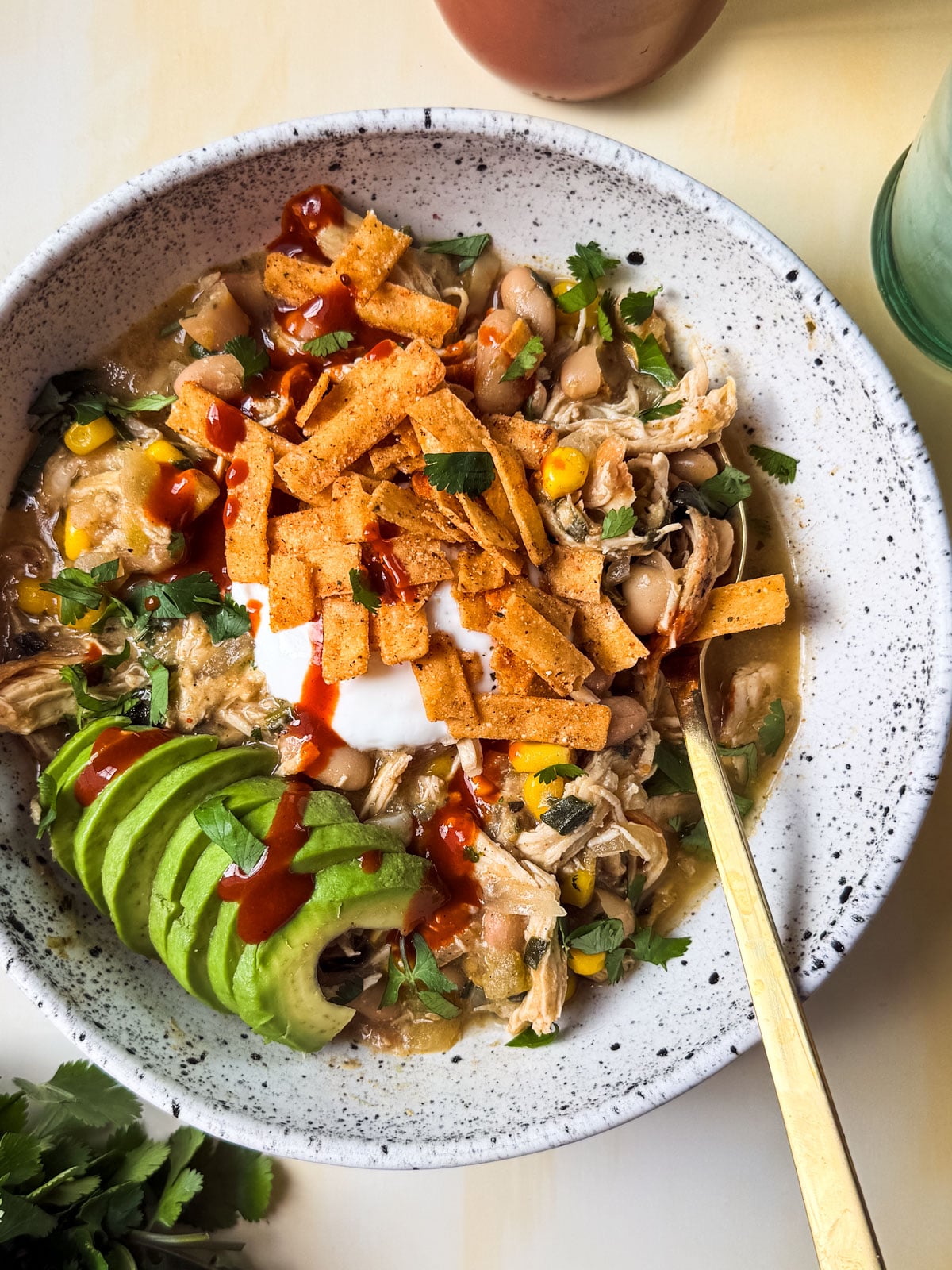 So flavorful! Would love a crockpot or instant pot variation but this came out perfect! I swapped some chicken broth with chicken bone broth for added protein. I’ve also never seen a chicken chili with spinach in it – love that addition!